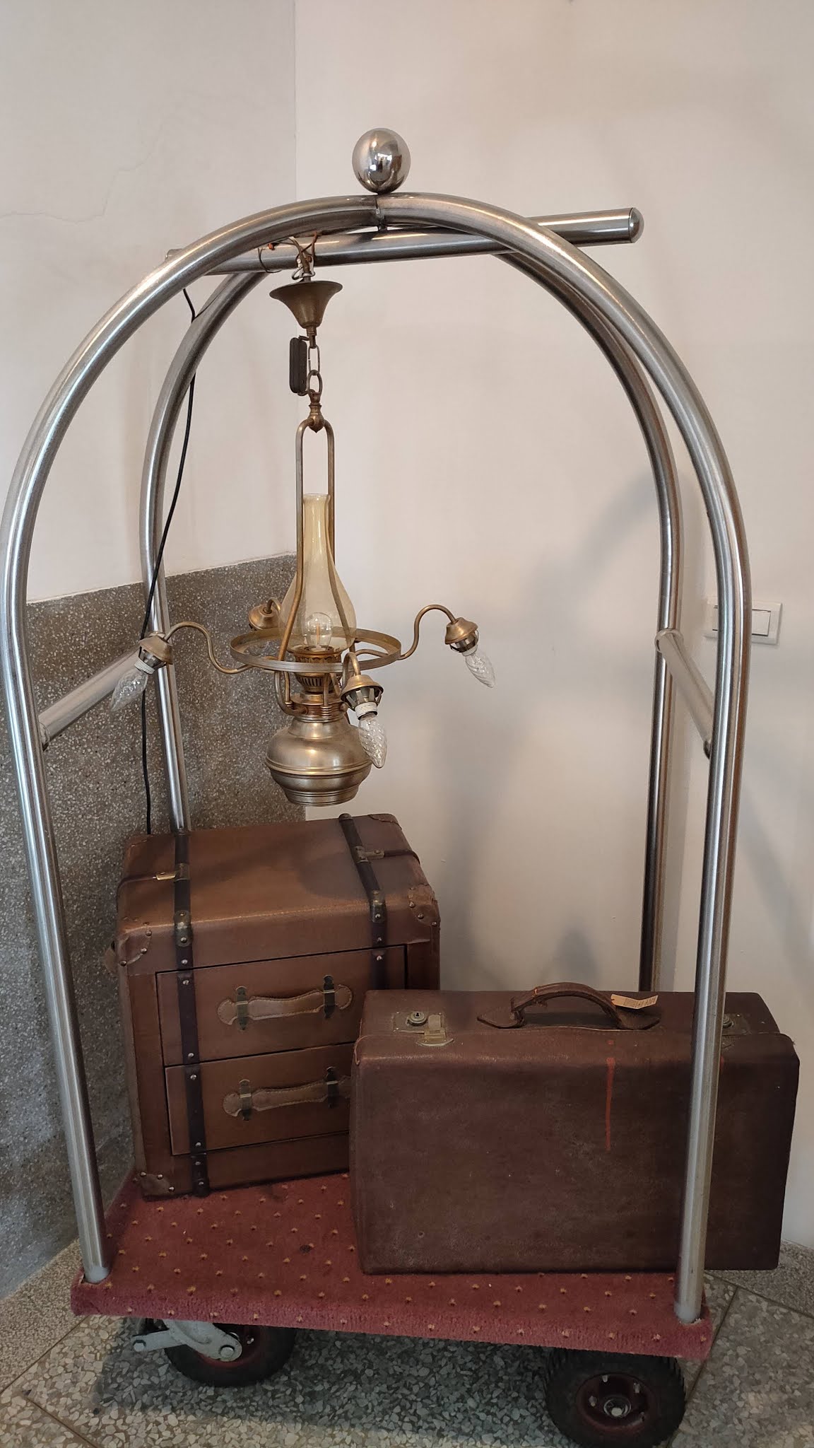 入口牆面上還有張放大的老照片,不曉得為何中間被撕了下來
